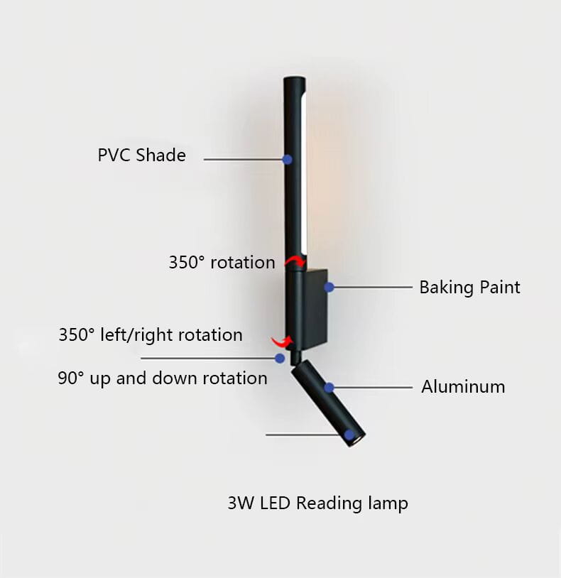 Kai to nie tylko design – to również przemyślana funkcjonalność. Kinkiet został wyposażony w dwa źródła światła: główne o mocy 5W oraz praktyczną lampkę do czytania 3W, którą można obracać w zakresie 345° oraz odchylać o 90°, zapewniając idealne dopasowanie kąta padania światła do Twoich potrzeb.
