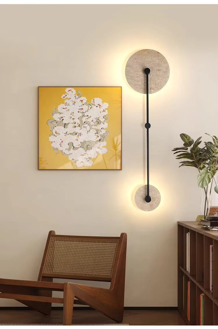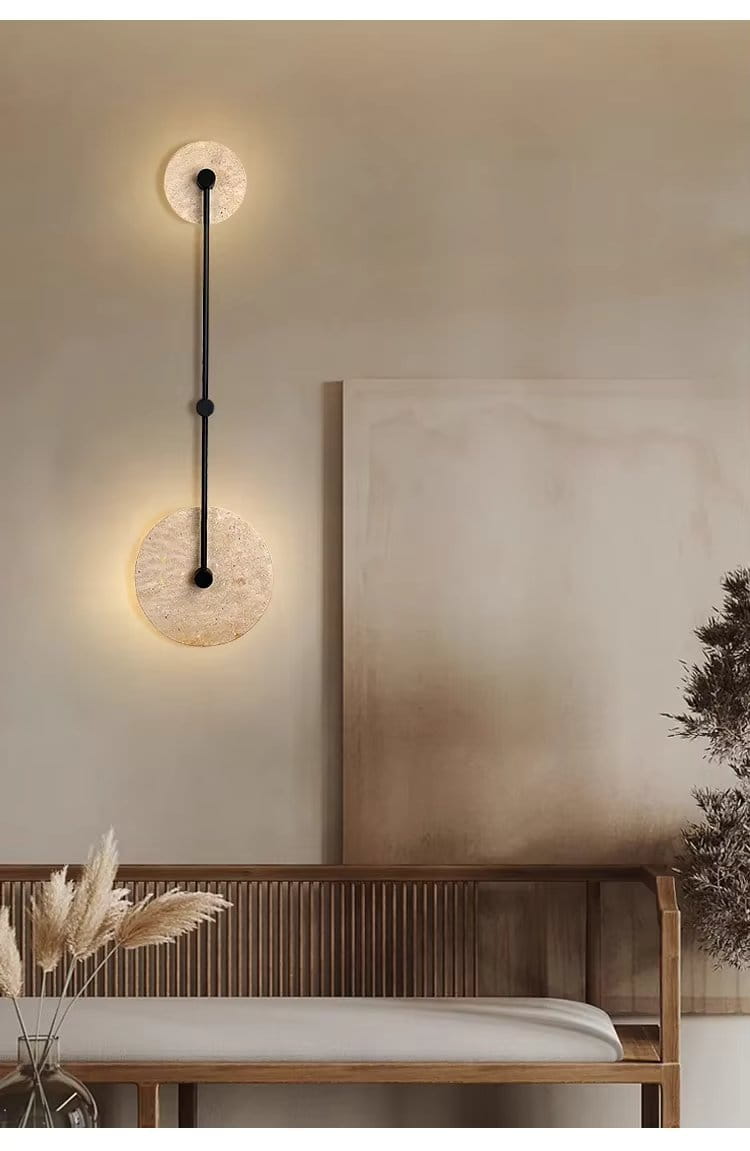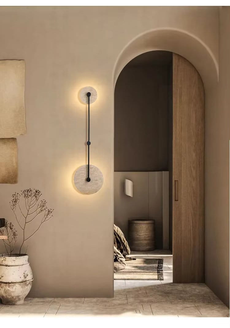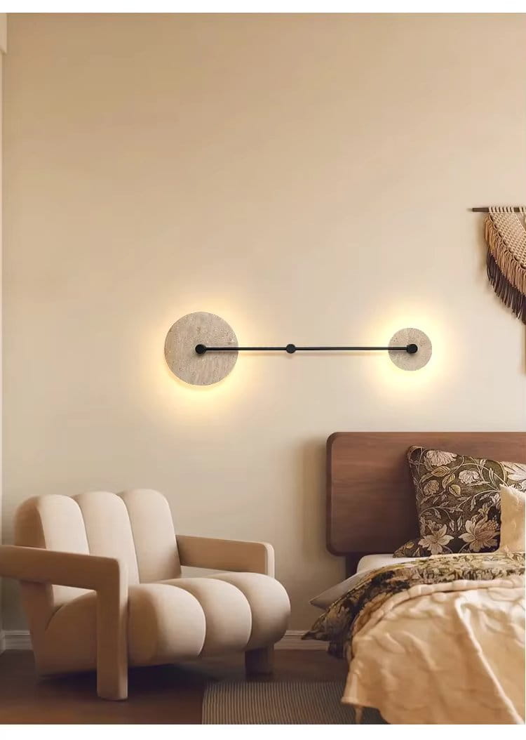 Lampa Purē – Kinkiet LED z Naturalnego Kamienia w Kształcie Okręgu, Vintage Dekoracja do Sypialni