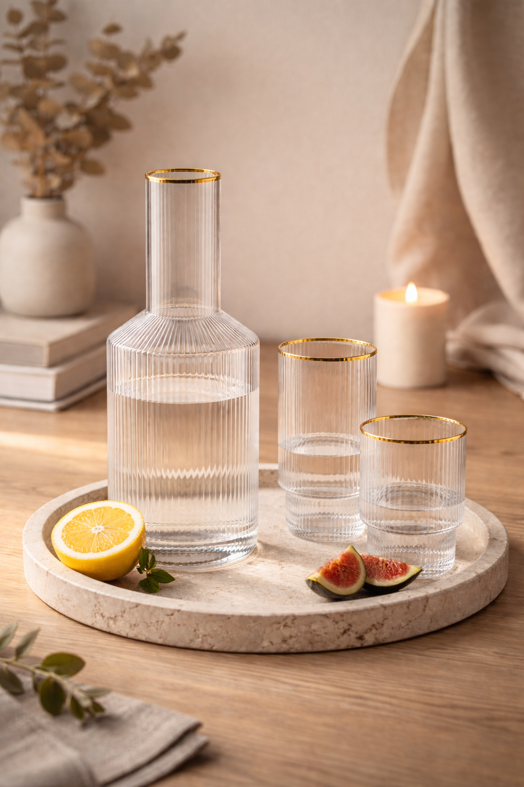 Dostosowana do Twoich potrzeb. Nasza szklanka Raifu Gold jest dostępna w dwóch pojemnościach, co pozwala dopasować ją do Twoich preferencji i potrzeb. A jeśli szukasz kompletnego zestawu, mamy również dla Ciebie idealne rozwiązanie - do szklanki Raifu Gold dostępna jest także karafka w dwóch pojemnościach, tworząc harmonijny duet, który z pewnością zachwyci Twoich gości.